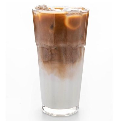 یک شات اسپرسو ۷۰% روبوستا ۳۰٪ عربیکا،شیر،یخ ،سیروپ کارامل و سس کارامل